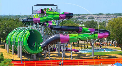 巨蟒滑梯:游客乘著最多一次可以容納6個(gè)人的圓形皮筏浮墊從19米的高空出發(fā),高速穿越一段六十多米的螺旋滑槽后,急速下降近十米俯沖至一條巨大封閉管道中,反復(fù)左沖右突和旋轉(zhuǎn)著,猶如身處憤怒的蟒蛇當(dāng)中,努力去黑暗作斗爭(zhēng),最終重見(jiàn)光明,回歸平靜的水中。帶給游客一種獨(dú)特的奮進(jìn)的漂流體驗(yàn)。由于體積龐大,形狀獨(dú)特壯觀(guān)可以作為大型水上樂(lè)園王牌賣(mài)點(diǎn),標(biāo)志性設(shè)施。另外此水滑梯接待能力非常強(qiáng)每小時(shí)最大接客量高達(dá)1080人,最大程度地縮短游客排隊(duì)時(shí)間,極大的吸引人氣。